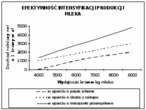 w zależności od wydajności mlecznej krów i systemu organizacji zaplecza paszowego ( 2000 r.) |
