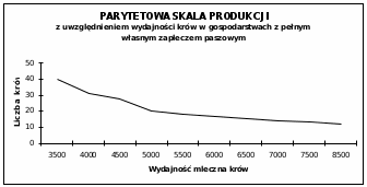Sugerowana na wykresie i w tabeli 1 skala produkcji wydawać się może duża jak na polskie warunki. Zaznaczyć jednak trzeba, ze dla wielu rolników okaże się możliwa jeżeli zrezygnują z kilku kierunków produkcji na rzecz tylko i wyłącznie produkcji mleka. Innymi słowy gdy zaczną wzorem farmerów USA i UE specjalizować się w chowie krów.