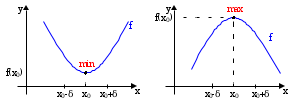 Mówimy, że funkcja f ma w punkcie x0 maksimum (minimum) lokalne równe f(x0), jeżeli istnieje takie otoczenie (x0-δ, x0+δ) punktu x0, że dla każdego x∊(x0-δ, x0+δ) zachodzi nierówność