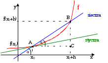 B(x0+h, f(x0+h)) przy h zmierzającym do 0. Fakt ten ilustruje poniższy rysunek.