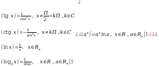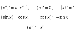 2) (pochodna funkcji złożonej) – jeżeli funkcje u=f(x) i y=g(u) mają pochodne [f(x)]’ oraz [g(u)]’ to funkcja F(x) = g(f(x)) ma pochodną [F(x)]’ = [g(u)]’[f(x)]’.