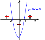 Badamy teraz znak pochodnej. W tym celu narysujmy jej przybliżony wykres.