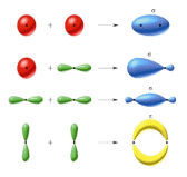 3)Nakładanie się orbitali zhybrydyzowanych z innymi orbitalami (atomowymi, zhybrydyzowanymi) prowadzące do utworzenia się orbitalu molekularnego(cząsteczkowego) tj.wiązanie chemiczne σ, π