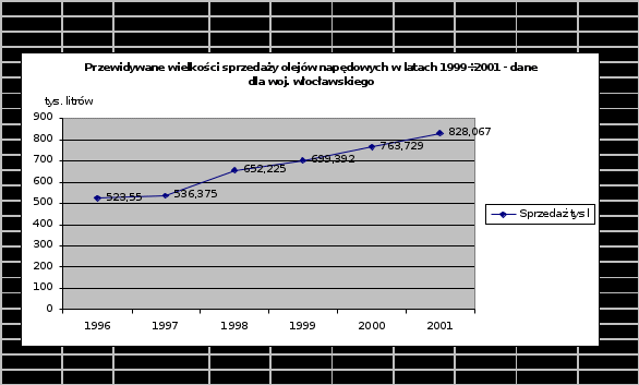 W celu określenia popytu na paliwa płynne na interesującym nas rynku, przeprowadzono szacunkowe obliczenia zużycia paliw przez zarejestrowane w byłym województwie pojazdy mechaniczne w rozbiciu na lata. Szacunki te pozwoliły zauważyć ciągły wzrost zapotrzebowania na paliwa płynne co prezentuje poniższy