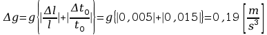 Z poniższych równań obliczone zostało przyspieszenie ziemskie oraz błąd bezwzględny .