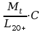 L20+ - liczba ludności w wieku 20 lat i więcej w połowie badanego okresu lub średnia liczba osób w wieku 20 lat i więcej w badanym okresie