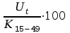 K15-49 – stan liczebny kobiet w wieku 15-49 lat w połowie badanego okresu lub średnia liczba kobiet w wieku 15-49 lat w okresie t