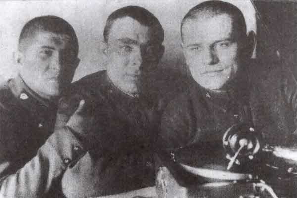 Группа курсантов Бронетанковой школы Забайкальского военного округа. Слева направо: Трошин М. И., Брежнев Л. И., Куценко А. Д. (г. Чита, 1936 г.)