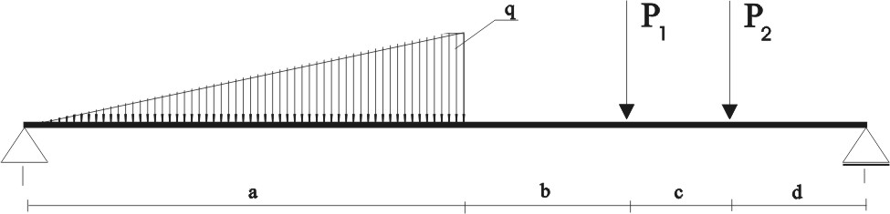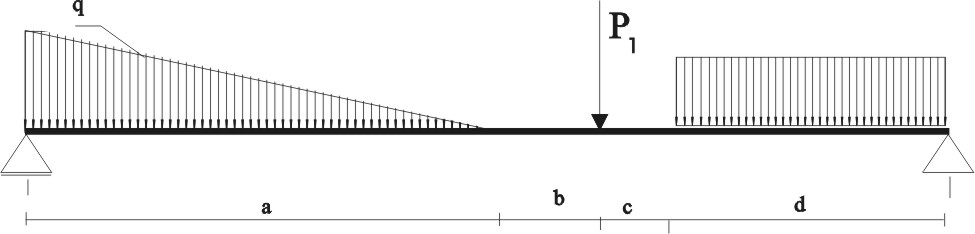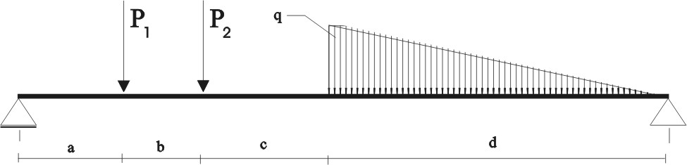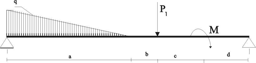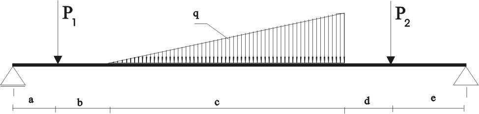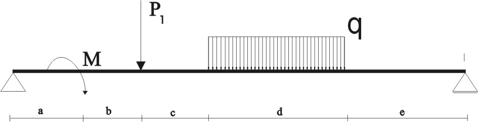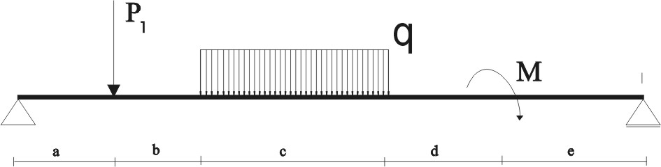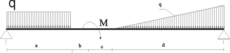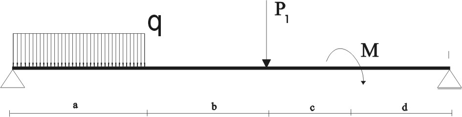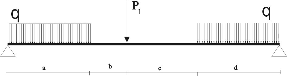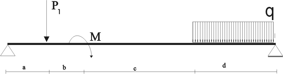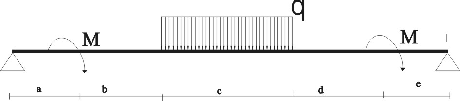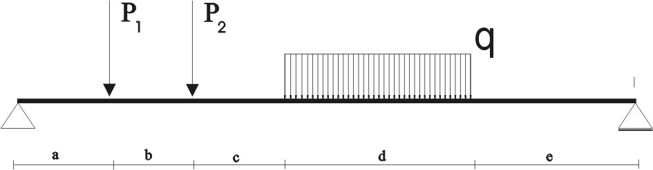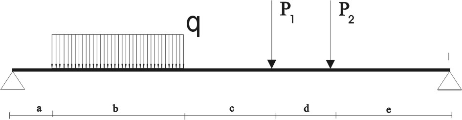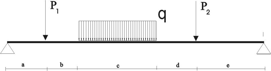 Proszę rozwiązać belkę wolnopodpartą i wykonać wykresy sił tnących i momentów zginających. Proszę rozwiązać to w formie równań (by można było policzyć dla dowolnych wartości).