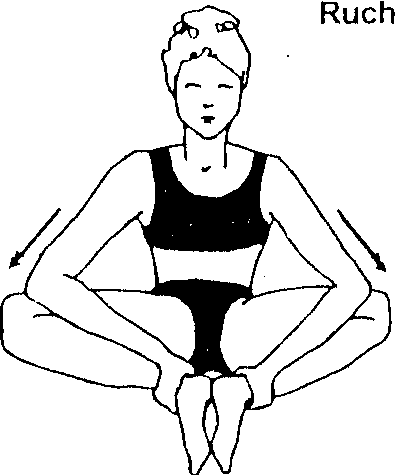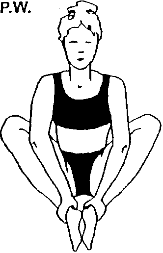 - siad w rozkroku, kończyny dolne zgięte w stawach biodrowych i