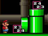 Now that the entrance and exit has been placed, you may test the level, and Mario should be able to enter the pipe and be warped up to the top.
