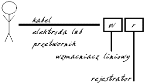 Przetwornik/elektroda => kabel=> wzmacniacz biologiczny=> rejestrator.