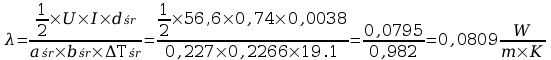 Współczynnik przewodności cieplnej λ określa ilość ciepła przepływającą pod wpływem różnicy temperatur 1K na drodze 1m przez powierzchnię 1m2 badanych materiałów.