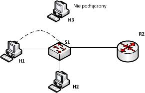 Podłącz host H1 do portu Fa0/11 przełącznika S1, oraz host H2 do portu Fa0/18. Skonfiguruj interfejsy sieciowe hostów według adresacji zaproponowanej w tabeli wyżej.