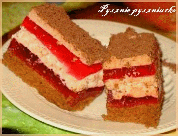 Biszkopt ciemny-połowa masy tężejącej galaretki-połowa masy z
