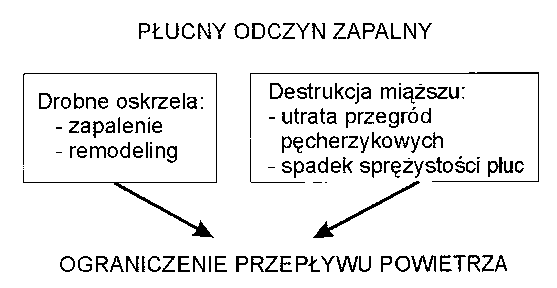 kowym ciśnienia w jamach opłucnowych są ujemne (-4/-8 mmHg). Ciśnienia okołooskrzelowe są zbliżone do ciśnienia w jamach opłucnowych, co pozwala utrzymać właściwą średnicę oskrzeli. Podczas nasilonego wydechu ciśnienia w jamach opłucnowych stają się dodatnie, podobnie jak ciśnienia okołooskrzelowe. Z chwilą, kiedy ciśnienia te zrównoważą się z ciśnieniem w drogach oddechowych, dochodzi do tzw. punktu wyrównania ciśnień i dynamicznego zamykania światła oskrzeli. Im silniejszy jest wydech, tym bardziej nasila się tendencja do zamknięcia oskrzeli, a przepływ powietrza staje się niezależny od wysiłku mięśni oddechowych. Głównym czynnikiem odpowiedzialnym za wydech są siły elastyczne płuc. W rozedmie wskutek zniszczenia tkanki włóknistej i wzrostu podatności płuc dochodzi do zahamowania przepływu przy wyższych objętościach płuc. Przeciwnie, u osób z chorobami śródmiąższowymi (wzrost oporów elastycznych) przepływ powietrza jest duży przy małych objętościach płuc. W przypadku chorób obturacyjnych (np. przewlekłe zapalenie oskrzeli, astma oskrzelowa) opór przepływu rośnie i punkt wyrównania ciśnień występuje przy wysokich objętościach płuc.