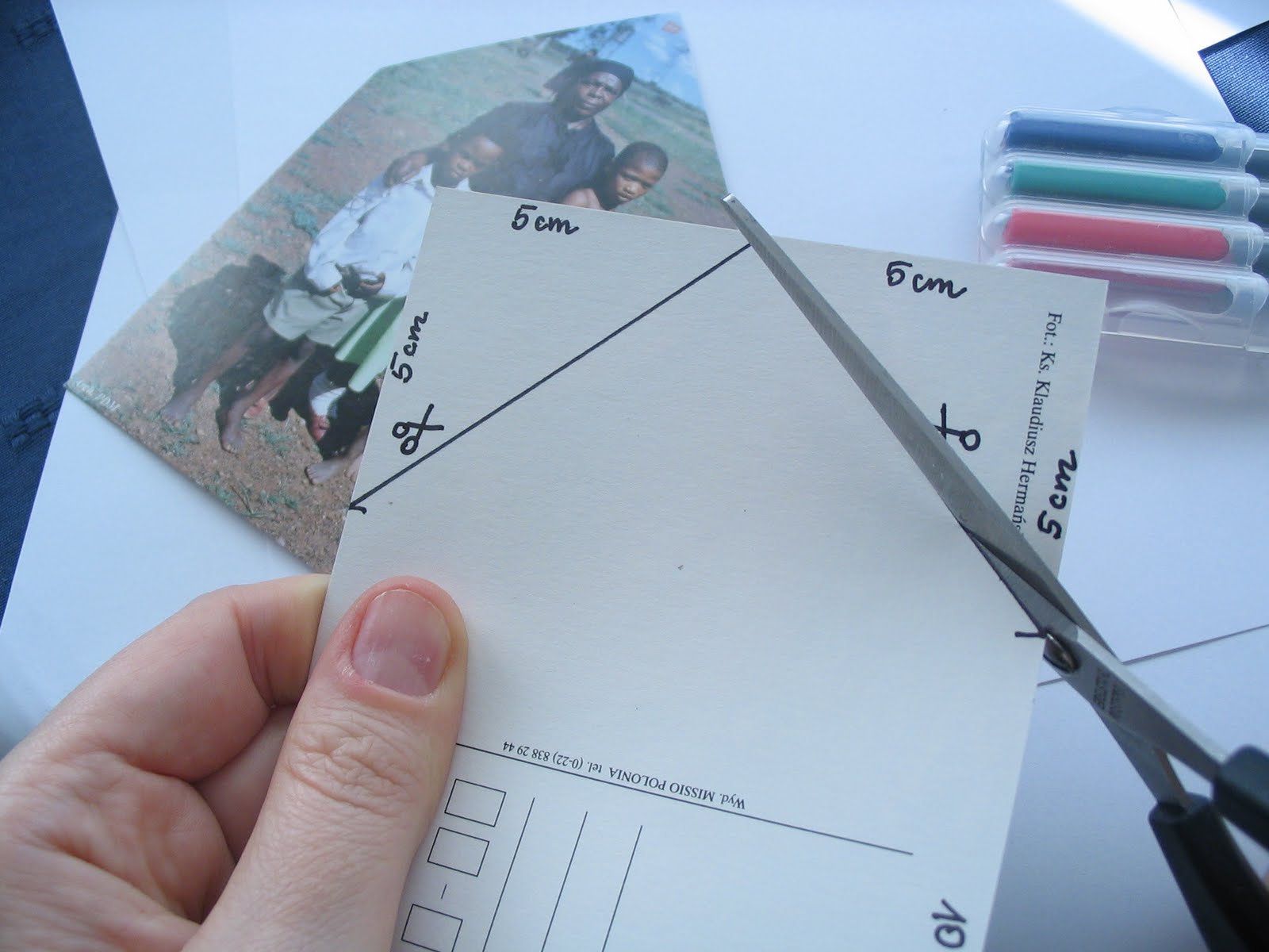 3. Ścianki boczne: odetnij rogi pocztówek jak na zdjęciu.