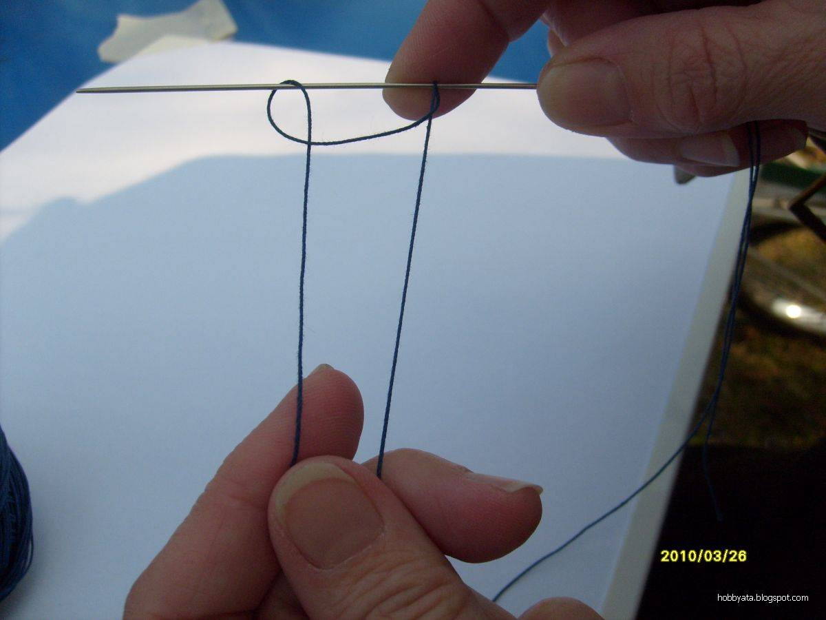 Przeciągamy igłę z nitką przez powstałą pętelkę...